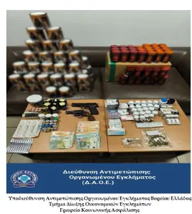 Από την Υποδιεύθυνση Αντιμετώπισης Οργανωμένου Εγκλήματος Βορείου Ελλάδος εξαρθρώθηκε εγκληματική ομάδα, τα μέλη της οποίας δραστηριοποιούνταν στην κατ’ επάγγελμα προμήθεια και διακίνηση αναβολικών σκευασμάτων και συμπληρωμάτων διατροφής, μη εγκεκριμένων από τον Εθνικό Οργανισμό Φαρμάκων (Ε.Ο.Φ.), με σκοπό την αποκόμιση παράνομου περιουσιακού οφέλους.