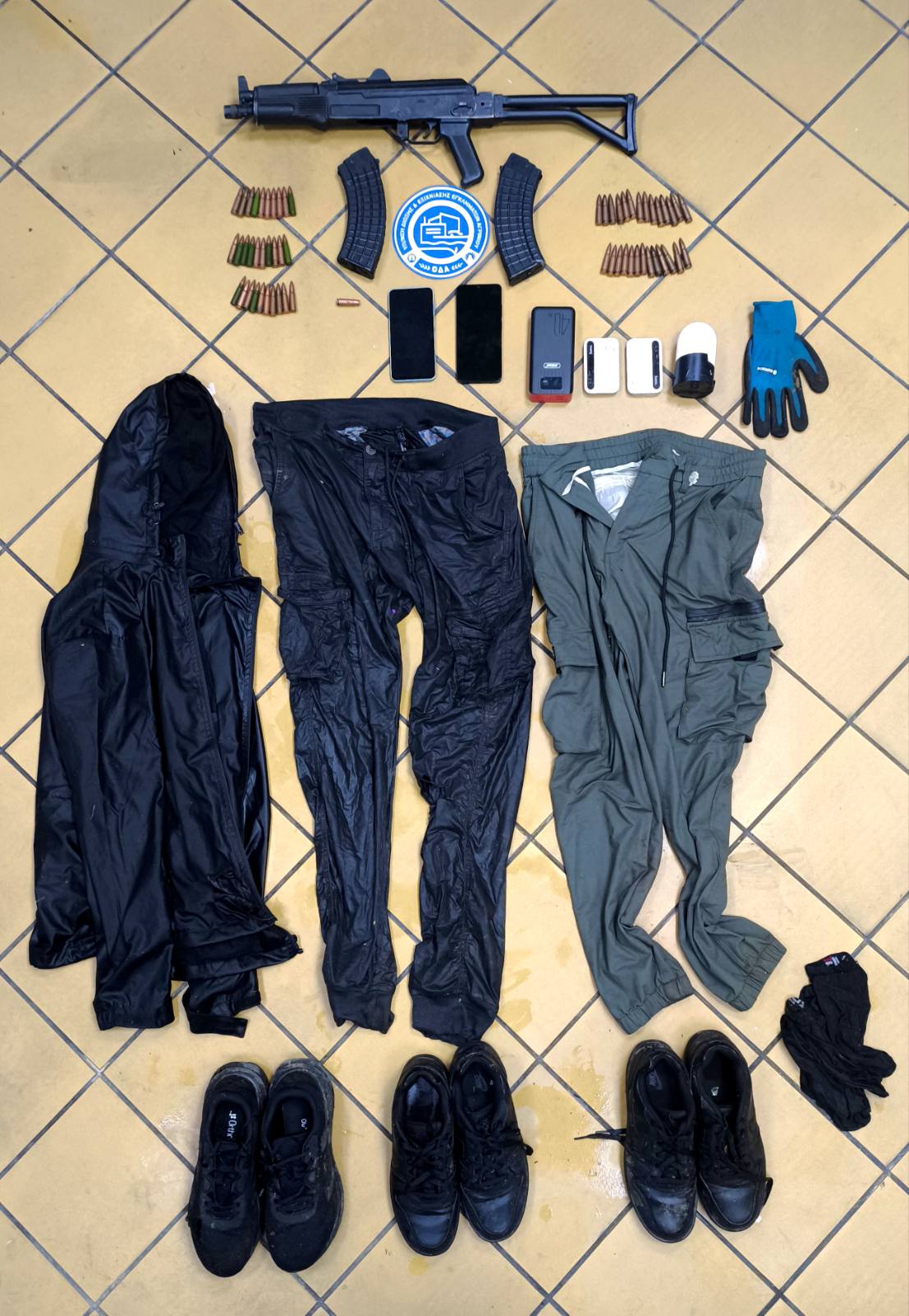 Σε έρευνες που πραγματοποιήθηκαν στην ανωτέρω οικία και στη λίμνη Τριχωνίδας βρέθηκε από τους αστυνομικούς και κατασχέθηκε ένα πολεμικό τυφέκιο, με σπαστό κοντάκι, με δυο γεμιστήρες, δεμένους με μονωτική ταινία, που έφεραν -57- φυσίγγια, καθώς και είδη ρουχισμού.