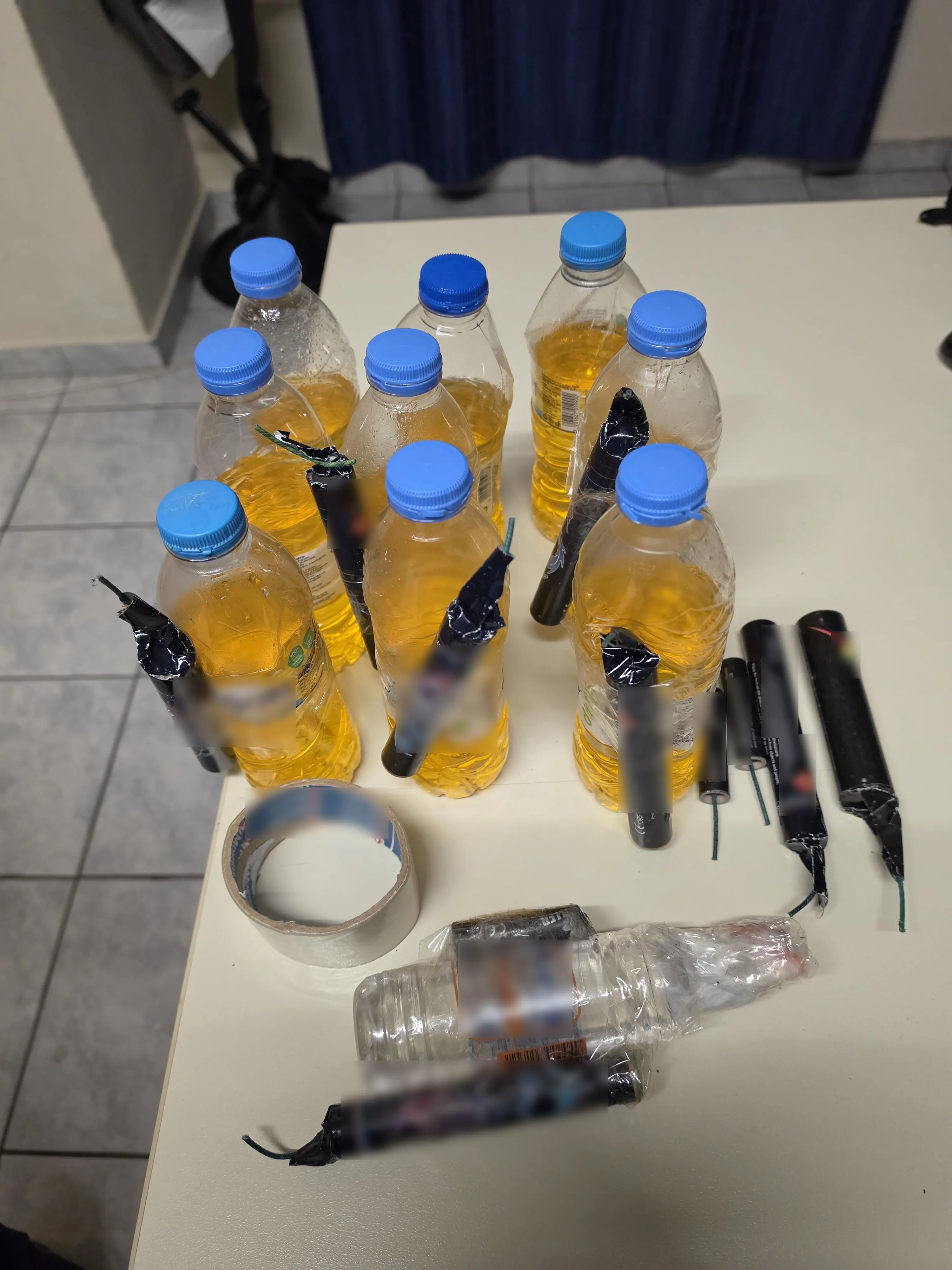 Κατασχέθηκαν συνολικά -153- μολότοφ, -38- ναυτικές φωτοβολίδες, -26- κροτίδες και -5- εύφλεκτα δοχεία