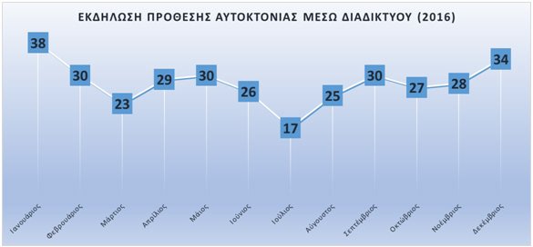 Από τις 17/10/2016 (ημερομηνία έναρξης λειτουργίας της πλατφόρμας) έως και τις 31/12/2016 υποβλήθηκαν συνολικά (39) καταγγελίες ηλεκτρονικών εγκλημάτων.